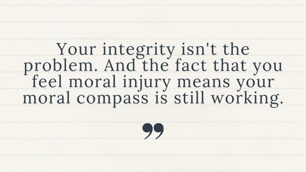 You’ve named what’s happening: moral injury. You’ve acknowledged that your integrity isn’t the problem.
